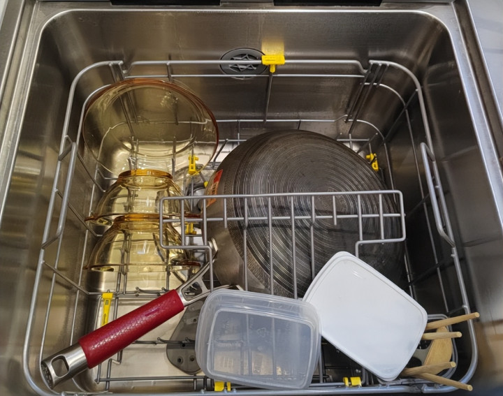 水槽洗碗机的容量有限,一家东说念主用的餐具少,十足可以放进去清洁,